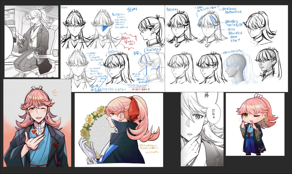 最初から最後まで楽しくかけたので良かった~!描き慣れない人を描く事に懸念があったので、翡翠の顔練習を少し挟んだのが功を成した気がする!あと自キャラの顔がすごい諸行無常なので、お気に入りの顔を資料としてまとめておきました。一覧にしておく事の重要性よ……。『PureRef』でまとめてる翡翠のお顔集はこれです。安定させたいな~顔面をさ~!3D使うとちょっと硬くなるから、それなしで自由自在に描けるのが理想。……一生無理では???