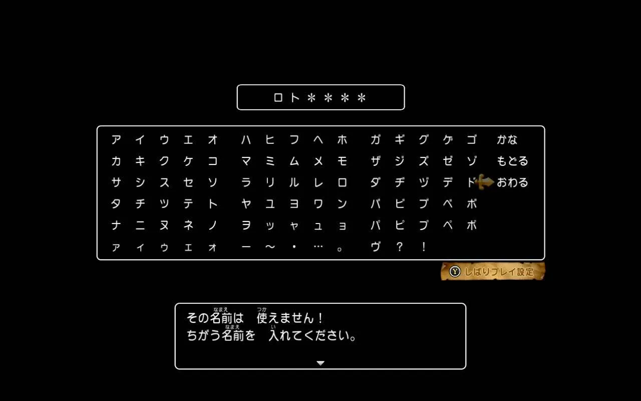 それと、11の主人公に『ロト』の名前がつけられない事は前から知っていて、その真相が気になったのもあります。まぁここは予想通りの展開ではあったのだけども、長年「へー?」って思っていた事が自分の手で糸を解せた事に満足です。ゲームは自分が体験してこそ!「>その名前は 使えません!」にニコっとしちゃったよね。