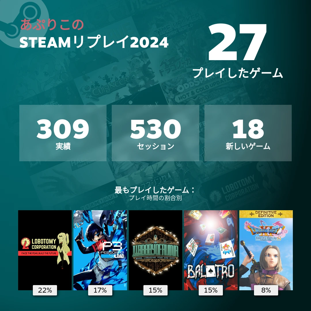 すでに2025年の春になりましたが、2024年に遊んだゲームの決算をします!年末年始とボリューミィなゲームで遊んでいる最中だったので、書き始めるのが遅くなってしまった。