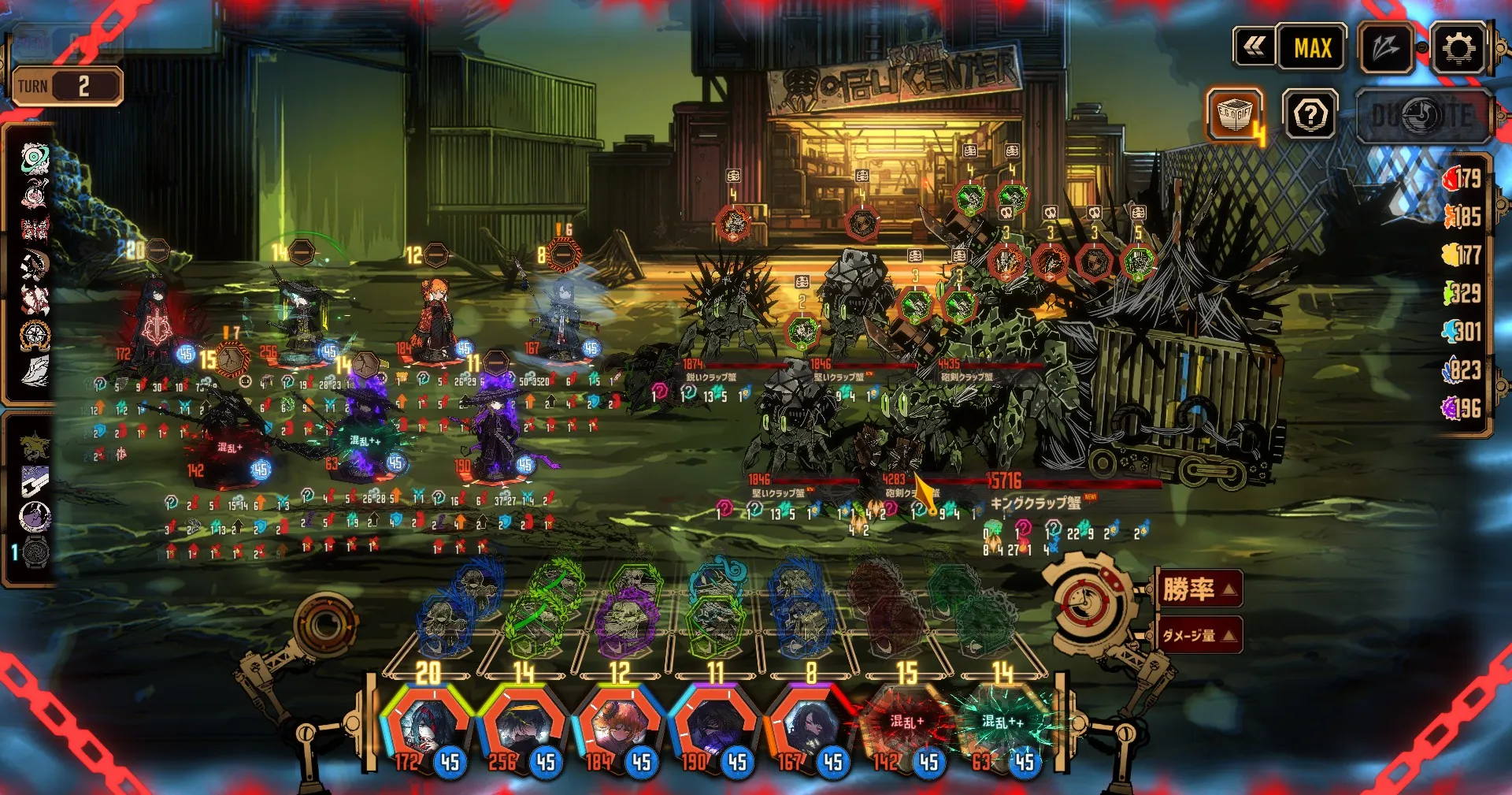 この難易度がすごくいい塩梅でね……「私いま、ゲームしてる……!」ってなったんです。よくある低レア縛りとかでゲームの難易度を上げて遊びを増やす……という事はしたくなくて。加えて「この順番でスキルを打てば勝てるよ」というテンプレ行動が存在しない中で試行錯誤するのがとてもとても楽しい!配られたカードで工夫する楽しみというかなあ。や、他のソシャゲにもそれはあるんですけど〝ゲームシステムを理解しなければ突破出来ない〟というシビアな匙加減が非常に私好みなゲームでした。