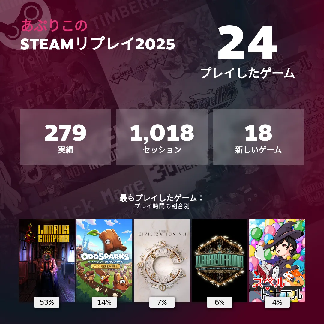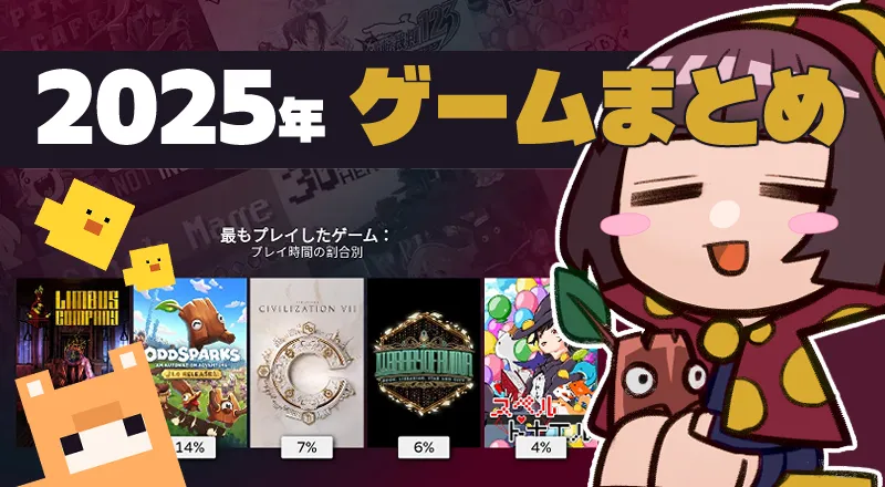 2025年は「ゲームやってるよりも絵描いてる方が楽しい」という十年に一度あるかないかのフィーバー状態に入っており、しっかりと腰を据えて遊ぶタイプのゲームは全く遊びませんでした。息抜きにちょちょい~とつまめるゲームを愛していた。
