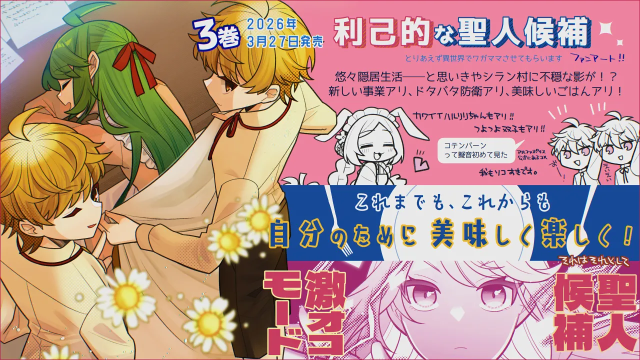 【利己的な聖人候補 とりあえず異世界でワガママさせてもらいます】の3巻が2026年3月26日に発売となりました。